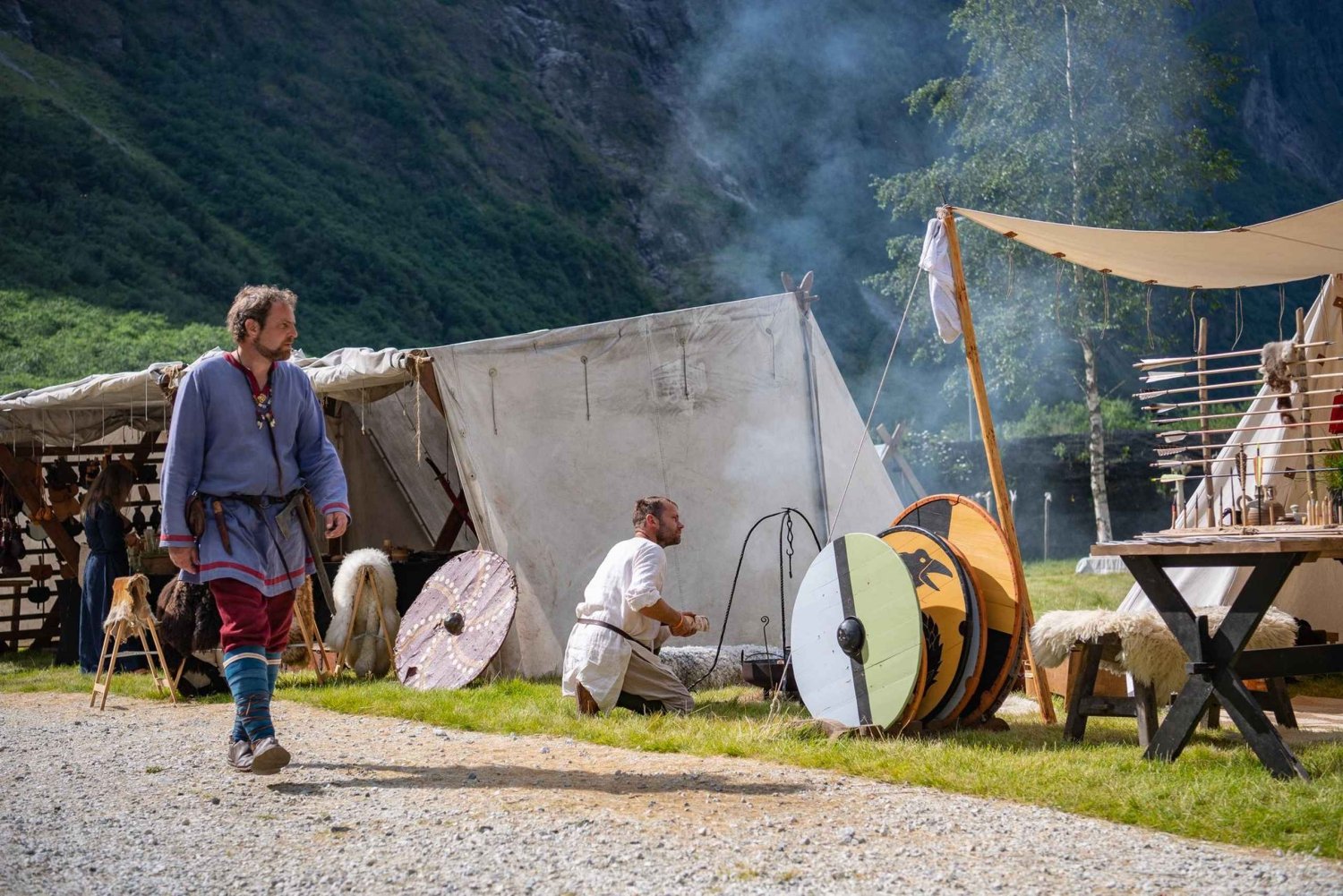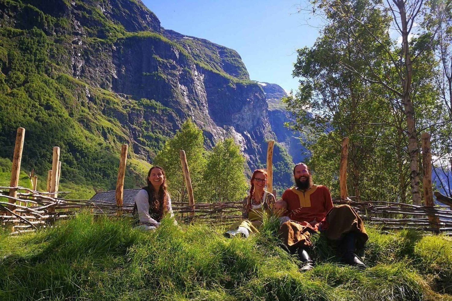 In Gudvangen erlebst du eine 30-minütige Führung durch das Wikingerdorf Njardarheimr und erfährst mehr über die Wikingerzeit in Norwegen.
