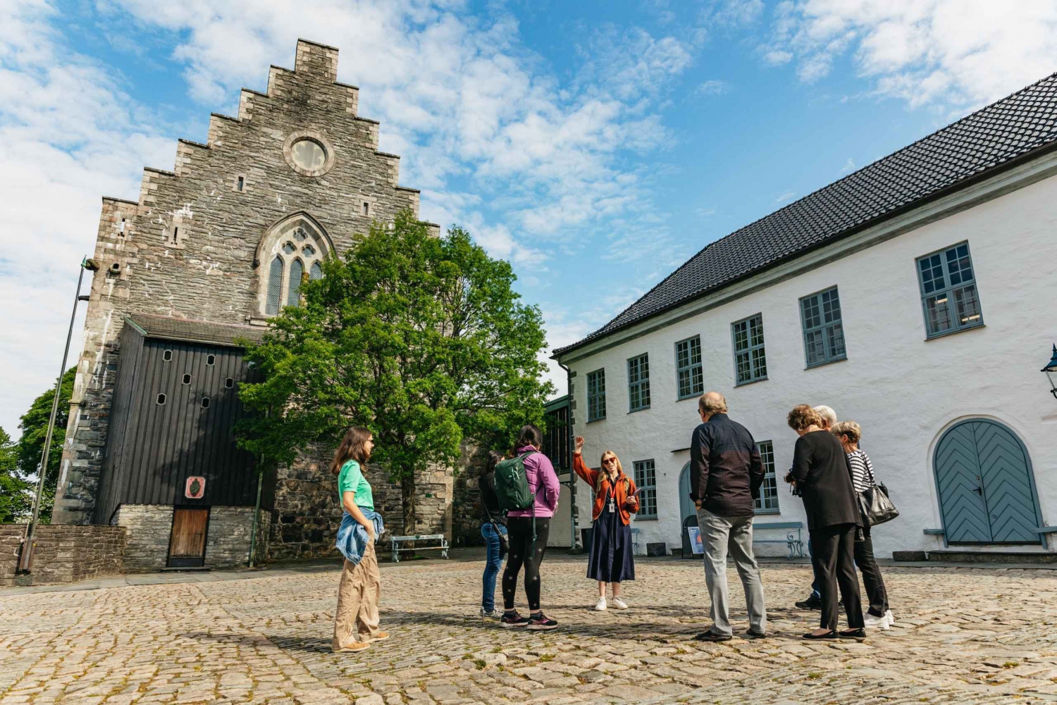 The first half of our tour focuses on the history of Bergen. We wander the fortress complex, covering Bergen’s medieval history and short period as the capital of Norway. Meet King Håkon Håkonsson, whose coronation is the first historic description of Bergen being a rainy city and learn how he built up the fortress (and Norway) as a European powerhouse. Learn about Norway’s period under Denmark, Sweden, and Nazis during occupation, and see how we use the fortress today. After this crash course in Norwegian history, we make our way to Bryggen – Bergen’s UNESCO World Heritage Site. Here you learn about 1,000 years of trade history and the reason for Bergen’s founding and growth. Get to know the Hanseatic League – the German trading organisation that operated here for 400 years – as we wander the 300-year-old alleys. Our historic overview finishes at St. Mary’s Church, the oldest building in Bergen.