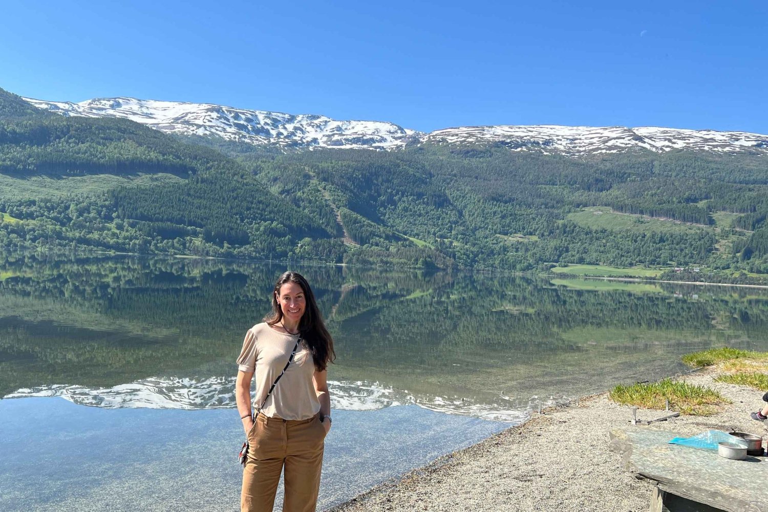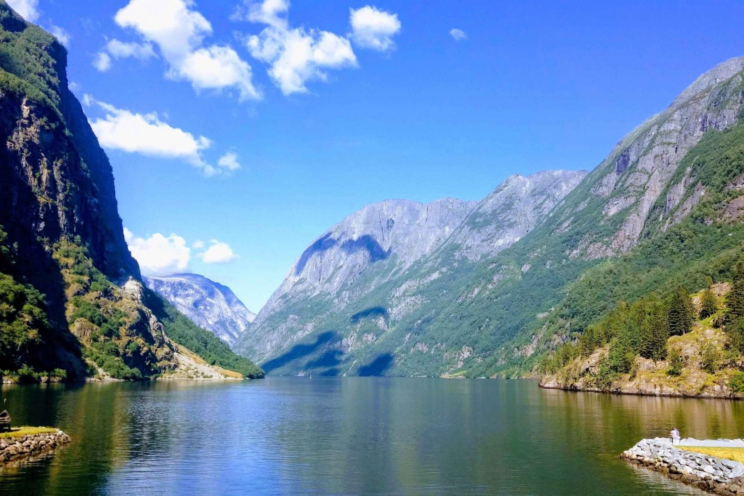 Installez-vous confortablement et laissez votre chauffeur-guide vous informer sur cette incroyable partie de la Norvège. Lors de cette visite privée, vous découvrirez l'une des régions de fjords les plus belles et les plus populaires de Norvège. L'étroit et spectaculaire Nærøyfjord est entouré de montagnes escarpées dont les sommets enneigés s'élèvent à 1 800 mètres au-dessus du niveau de la mer, de cascades et de villages idylliques le long du fjord. L'un de ces villages est Gudvangen, qui, à l'époque des Vikings, était un lieu de commerce important. Ajoutez à cela l'un des plus beaux voyages en train au monde, recommandé par National Geographic et Lonely Planet.