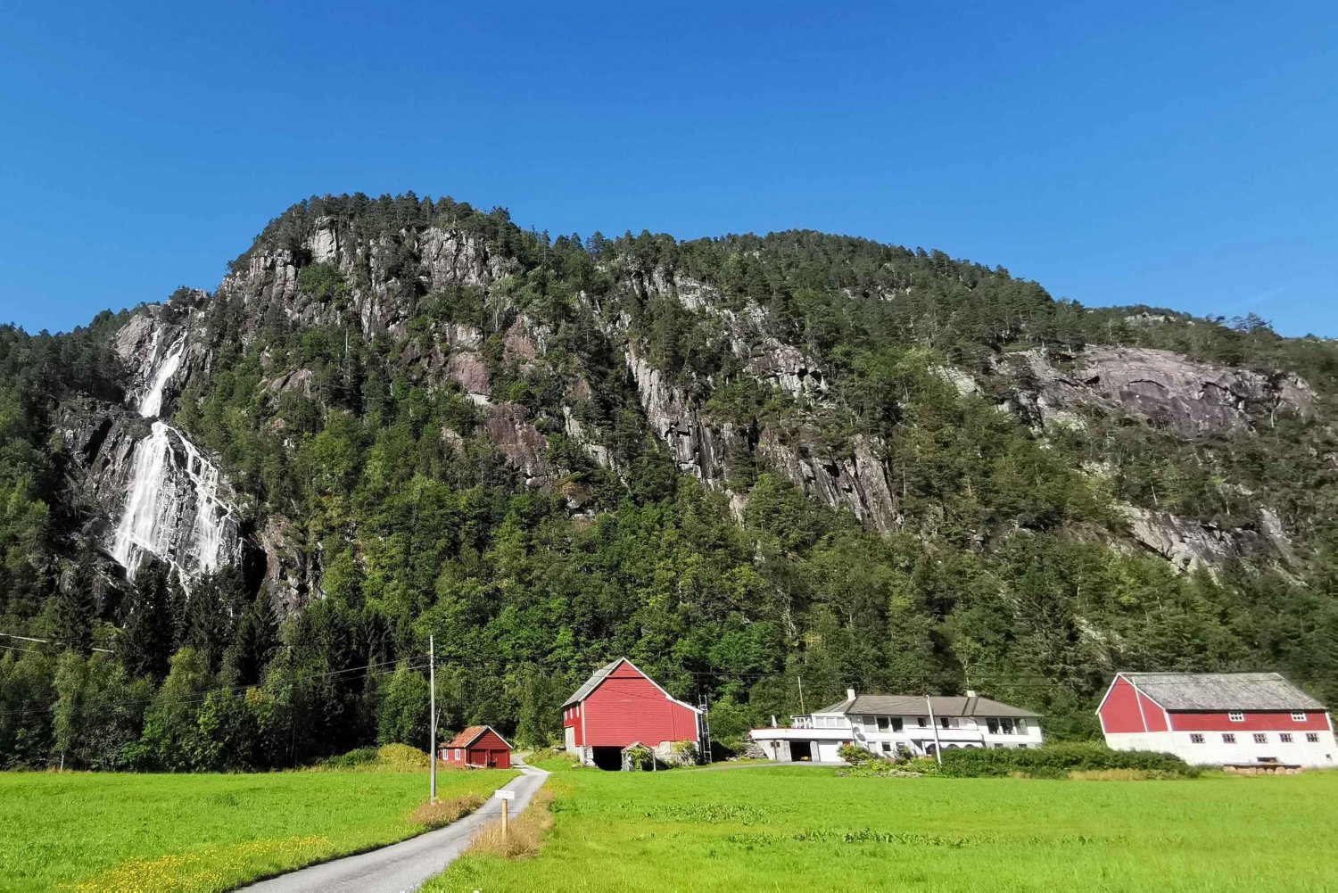 1. Tvindefossen : Le premier arrêt sera cette chute d'eau. Approchez-vous de l'eau et sentez sa fraîcheur.
