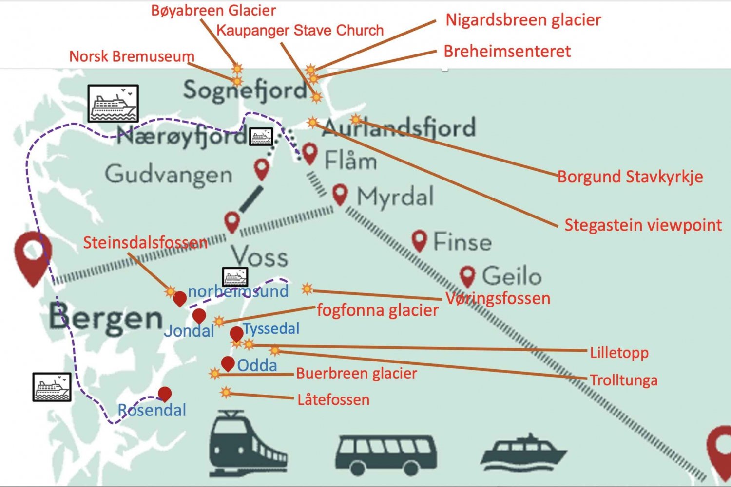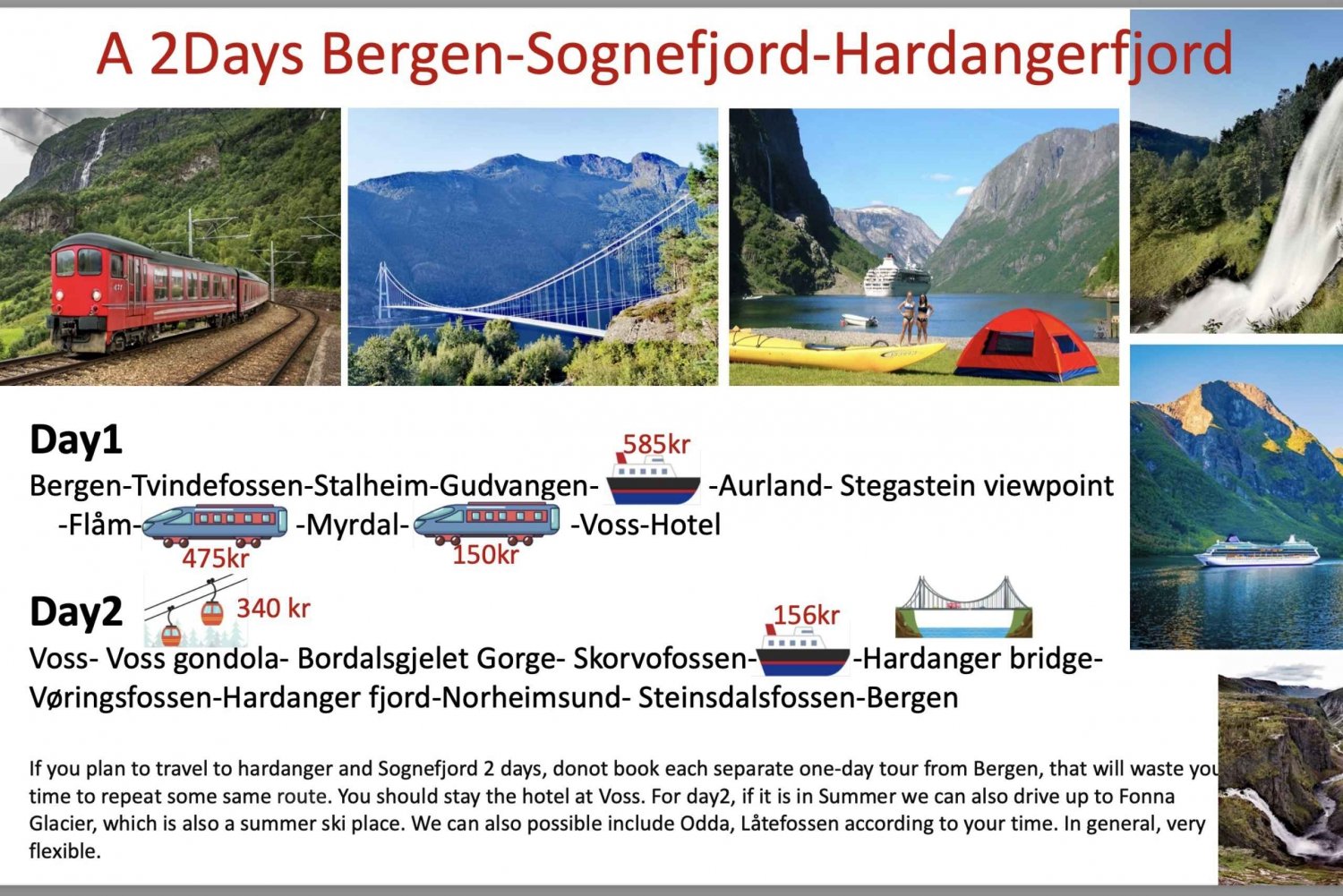 Flexibele 2-daagse rondvaart op maat in de Hardangerfjord en Sognefjord, rondvaart en flåm trein, inclusief Voss gondal. Er zijn meerdere routes beschikbaar die je kunt kiezen. We spreken Engels en Chinees.