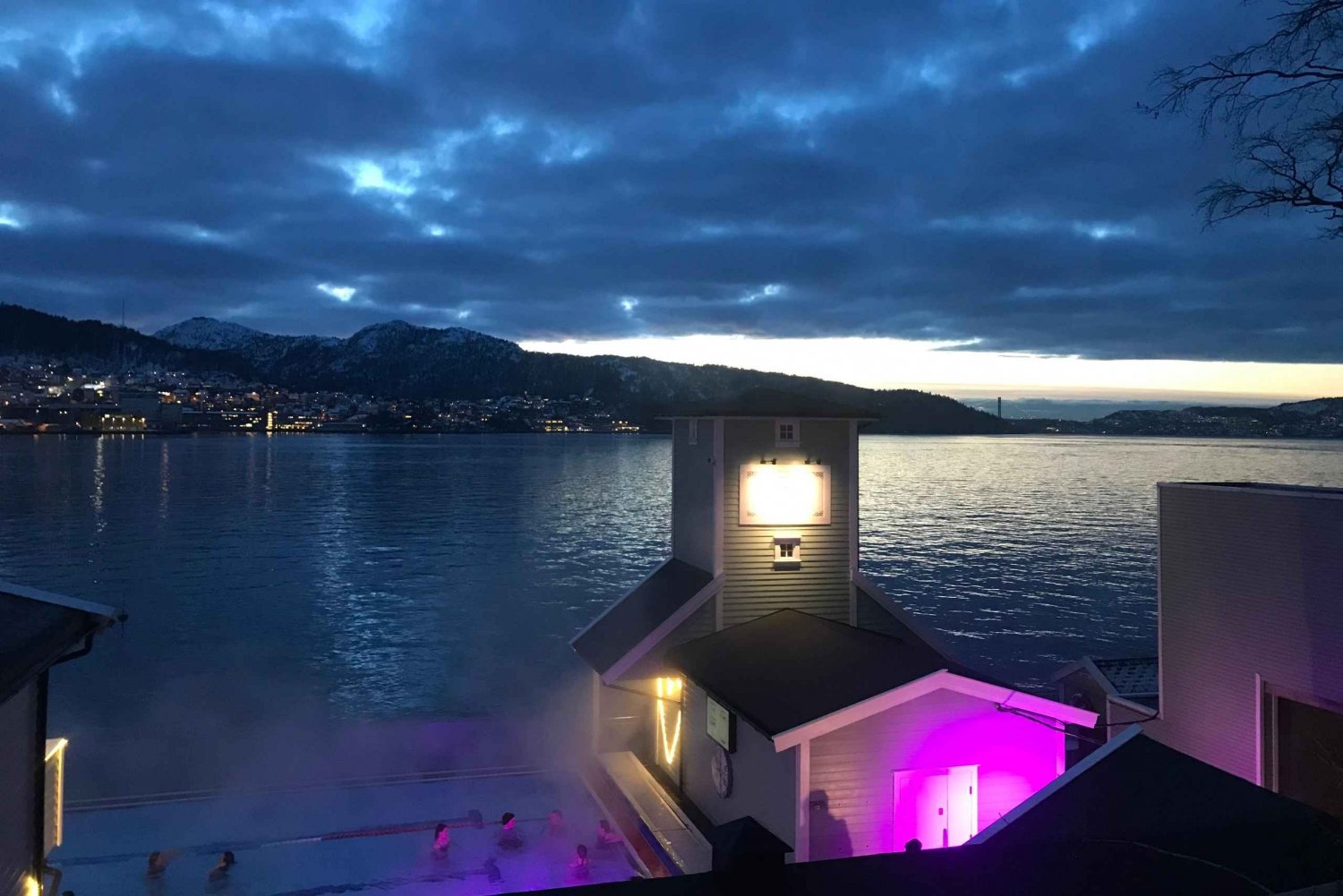 Saunabeleving met uitzicht op stad en fjord