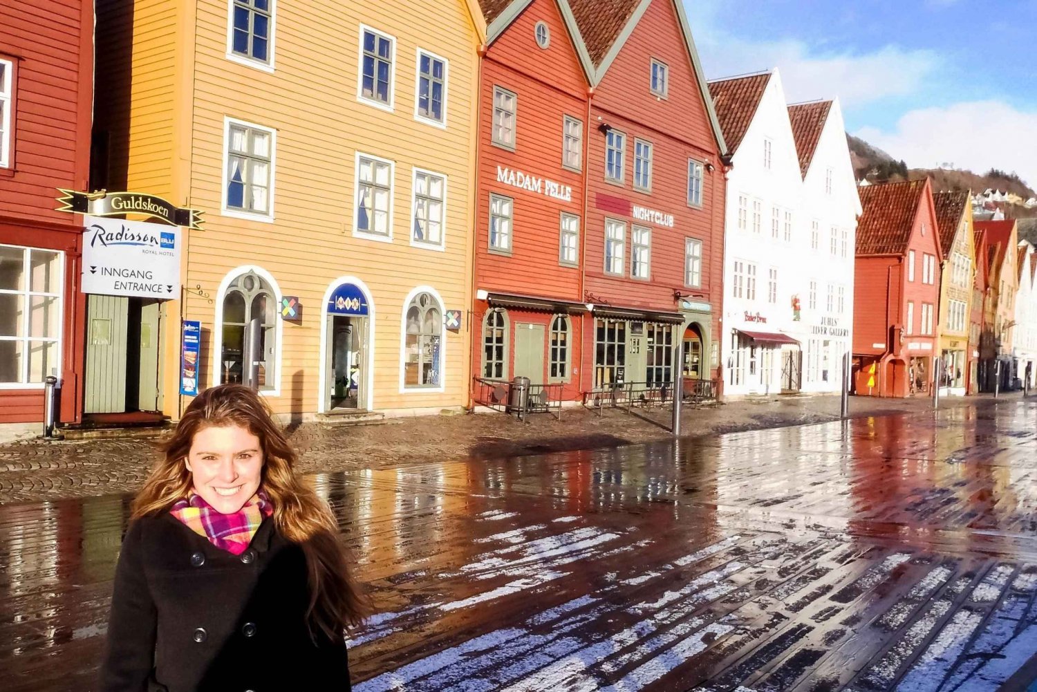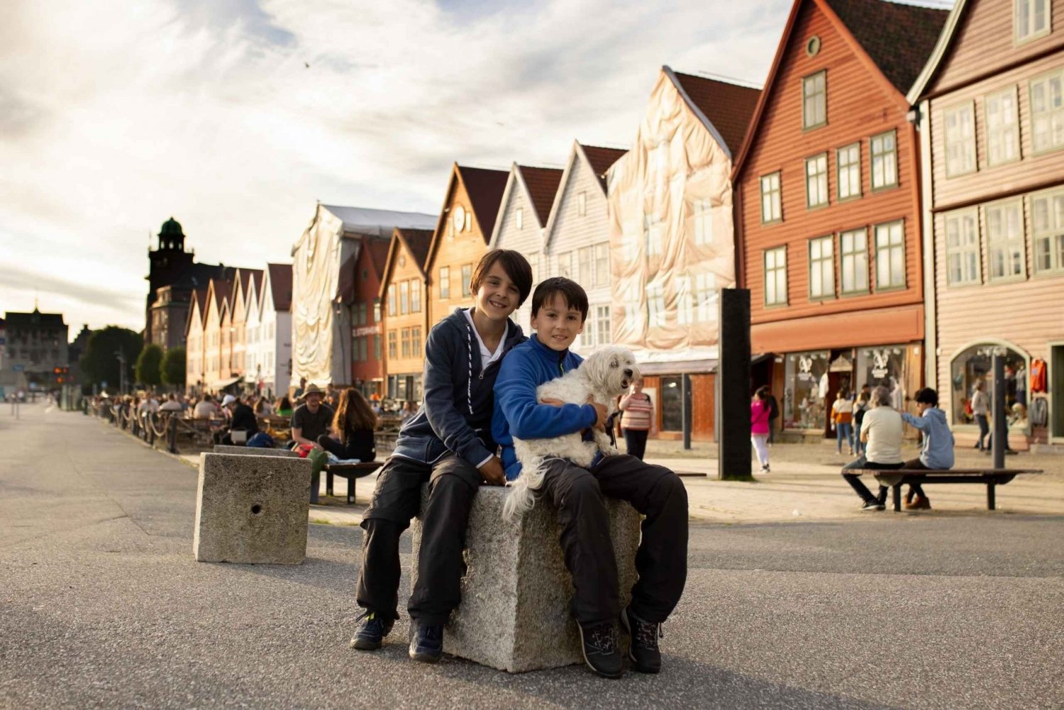 "Historyczna podróż po Bergen" zabierze Cię z Bradbenken 1 przez średniowieczne zabytki miasta, takie jak Rosenkrantz Tower i Haakon's Hall, do tętniącego życiem nabrzeża Bryggen.