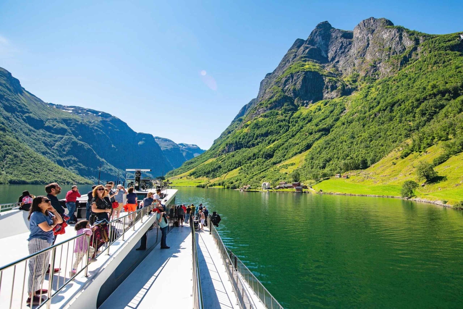 Ao chegar a Flåm, você notará o fiorde ao longo do Aurlandsfjord que margeia a cidade. Cercado por montanhas, cachoeiras e geleiras, esse vilarejo oferece uma variedade de atividades ao ar livre, como caminhadas, ciclismo e pesca.