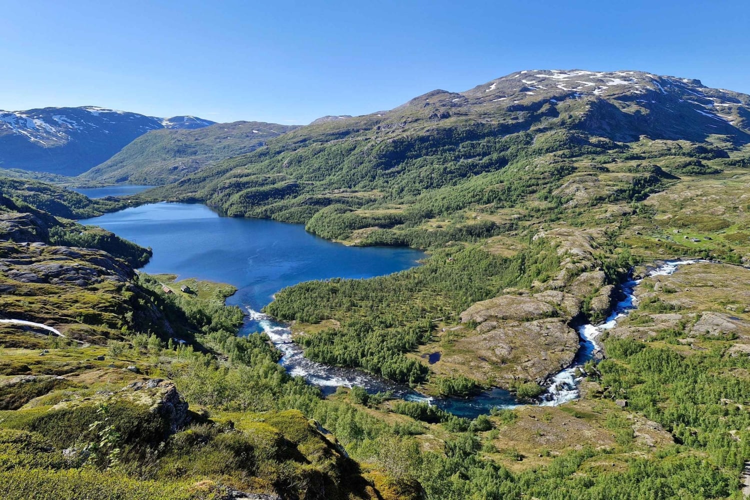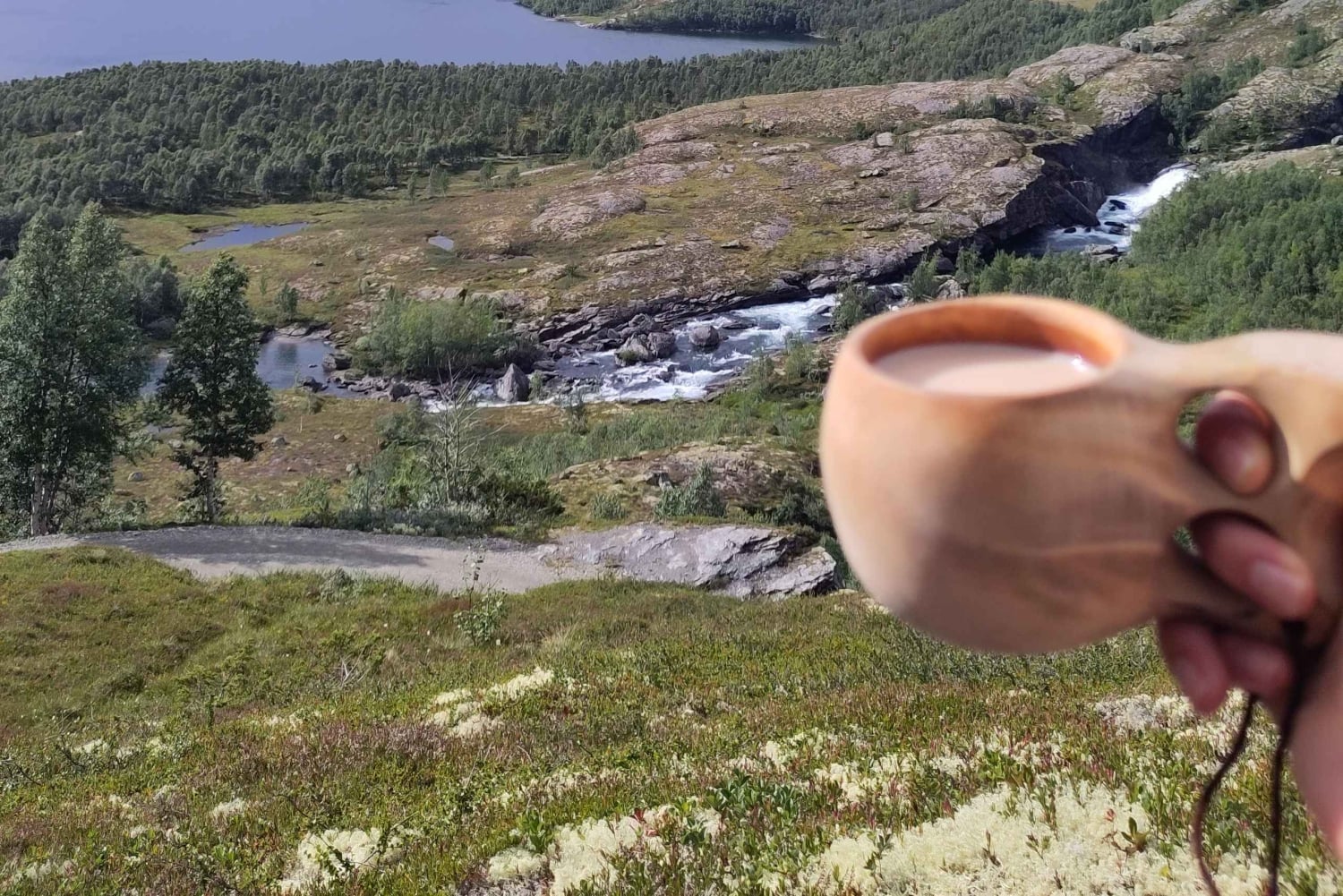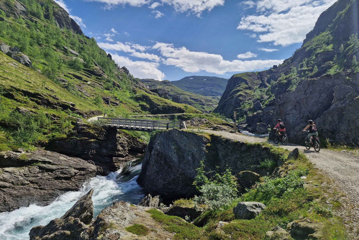 На комфортабельных электрических велосипедах мы проедем по исторической дороге Ралларвеген до горного озера Клеваватнет.